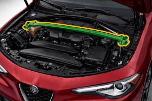 წარმოდგენილია Alfa Romeo Giulia-ის რასპორკა, რომელიც განკუთვნილია ძარის კონსტრუქციული გამაგრებისთვის და წინა საკიდრის კვანძების ერთმანეთთან დასაკავშირებლად.